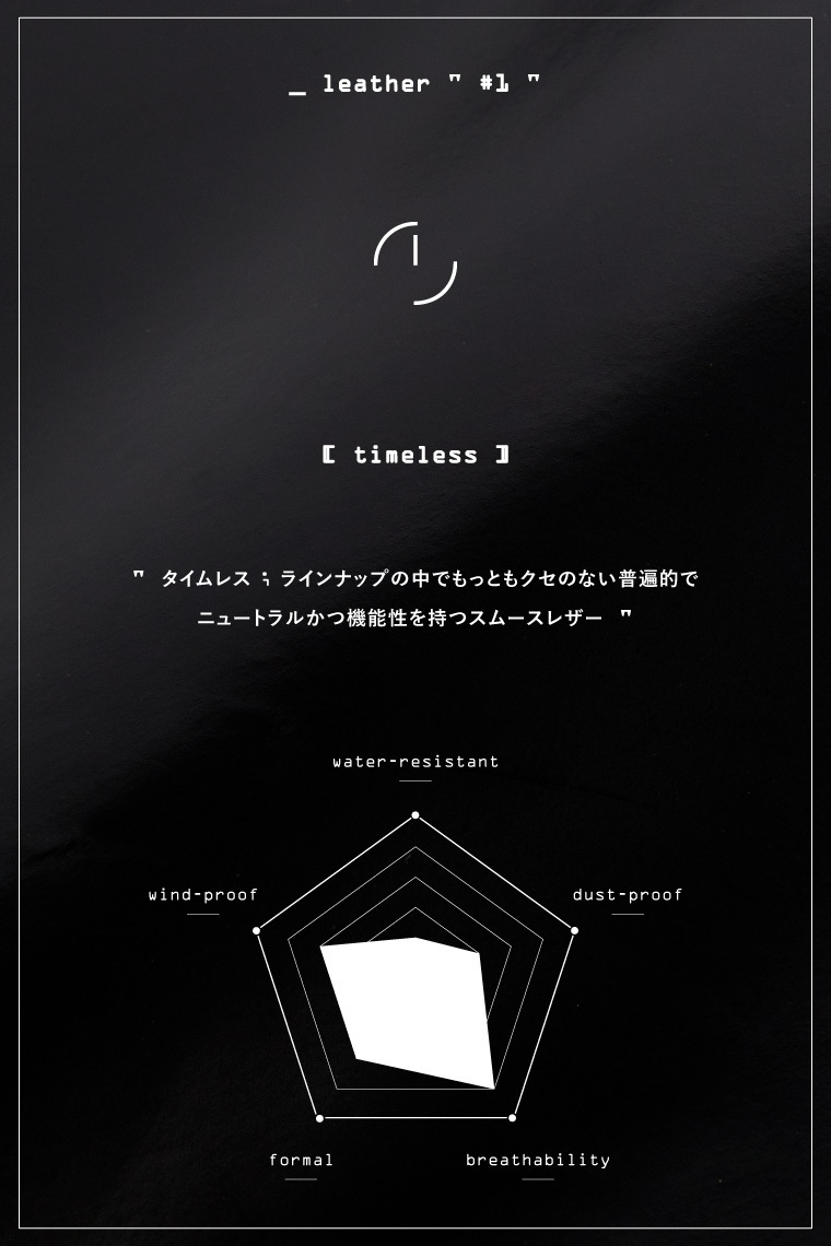 #1 タイムレス : ラインナップの中でもっともクセのない普遍的でニュートラルかつ機能性を持つスムースレザー。